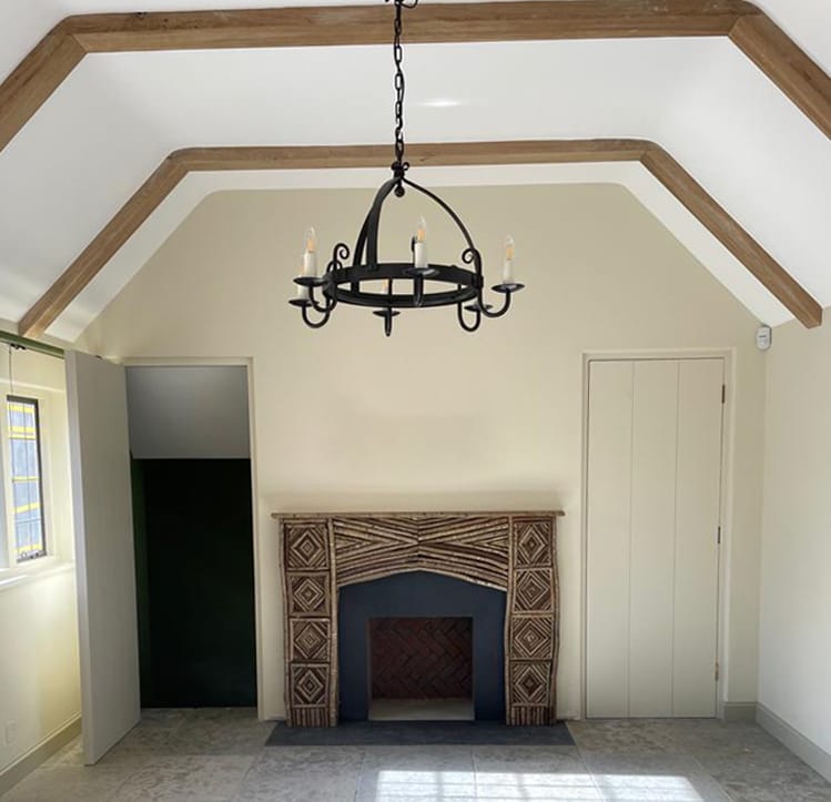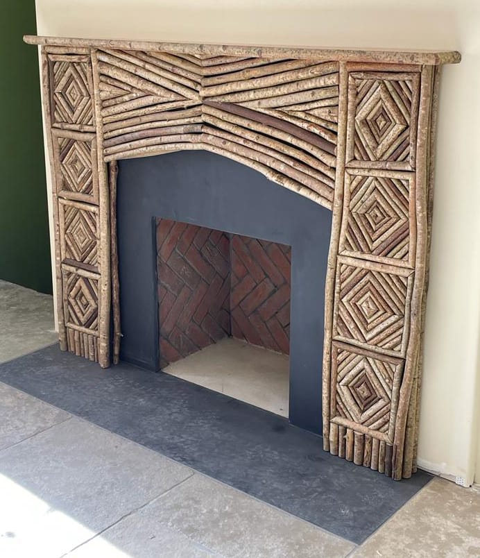 Hazel twig fireplace carefully crafted and assembled to give a rustic uncontrived look.